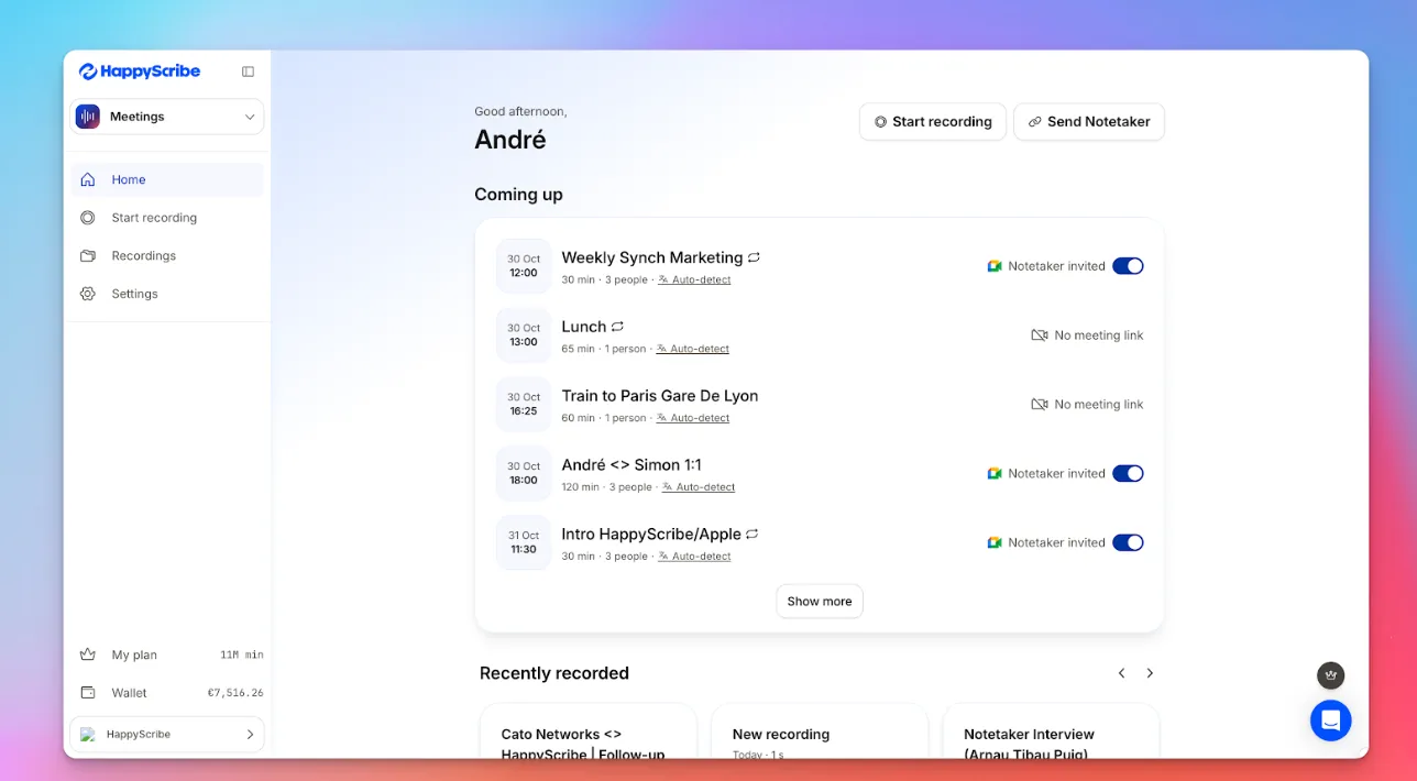 HappyScribe is intended for corporate users who require AI captioning, transcription, and meeting capture. The AI Notetaker creates AI summaries and action items, records conversations, and automatically enters meetings. Editable text with timestamps and exports are provided by audio and video transcription. Localization is made possible by subtitles in more than 120 languages. SOC 2 Type II, GDPR compliance, and human services provide reliable outcomes.