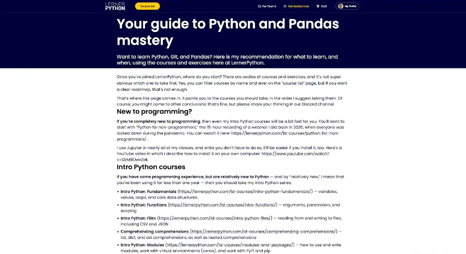 Learn Python and Pandas with Reuven Lerner, a seasoned instructor with 30+ years of experience teaching top companies. LernerPython focuses on deep understanding, not just syntax, so you truly master how Python works.