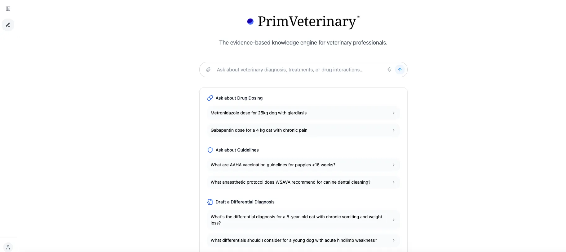PrimVeterinary is a trusted, evidence-based intelligence tool for the veterinary community. It creates AI-assisted content and verified citations to support professional research. However, it is not veterinary advice or a diagnostic tool, and should always be used alongside expert discretion and verification from primary sources.