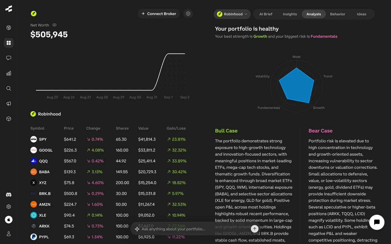 Rallies is your AI-powered investing assistant that makes stock research simple and fast. Ask questions in plain English, explore live charts, and dive into company fundamentals without switching tools. Connect your portfolio to track performance, spot risks, and enhance diversification. With smart screeners, market briefs, and deep analysis, Rallies delivers clarity and confidence for smarter investing.